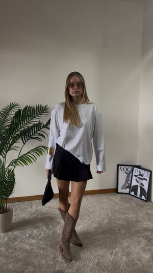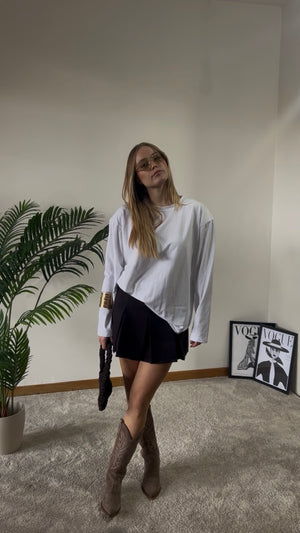 La modella è alta 163 cm ed è una taglia s, ovvero una 38/40 italiana.