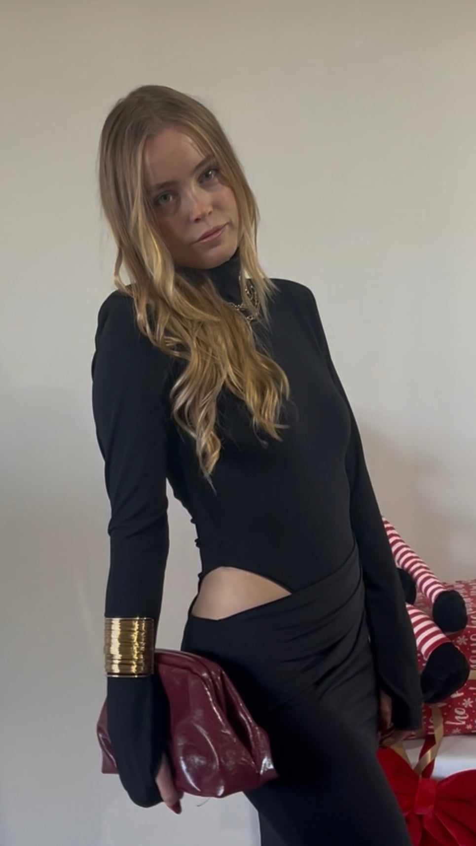 La modella è alta 163 cm ed è una taglia s, ovvero una 38/40 italiana.